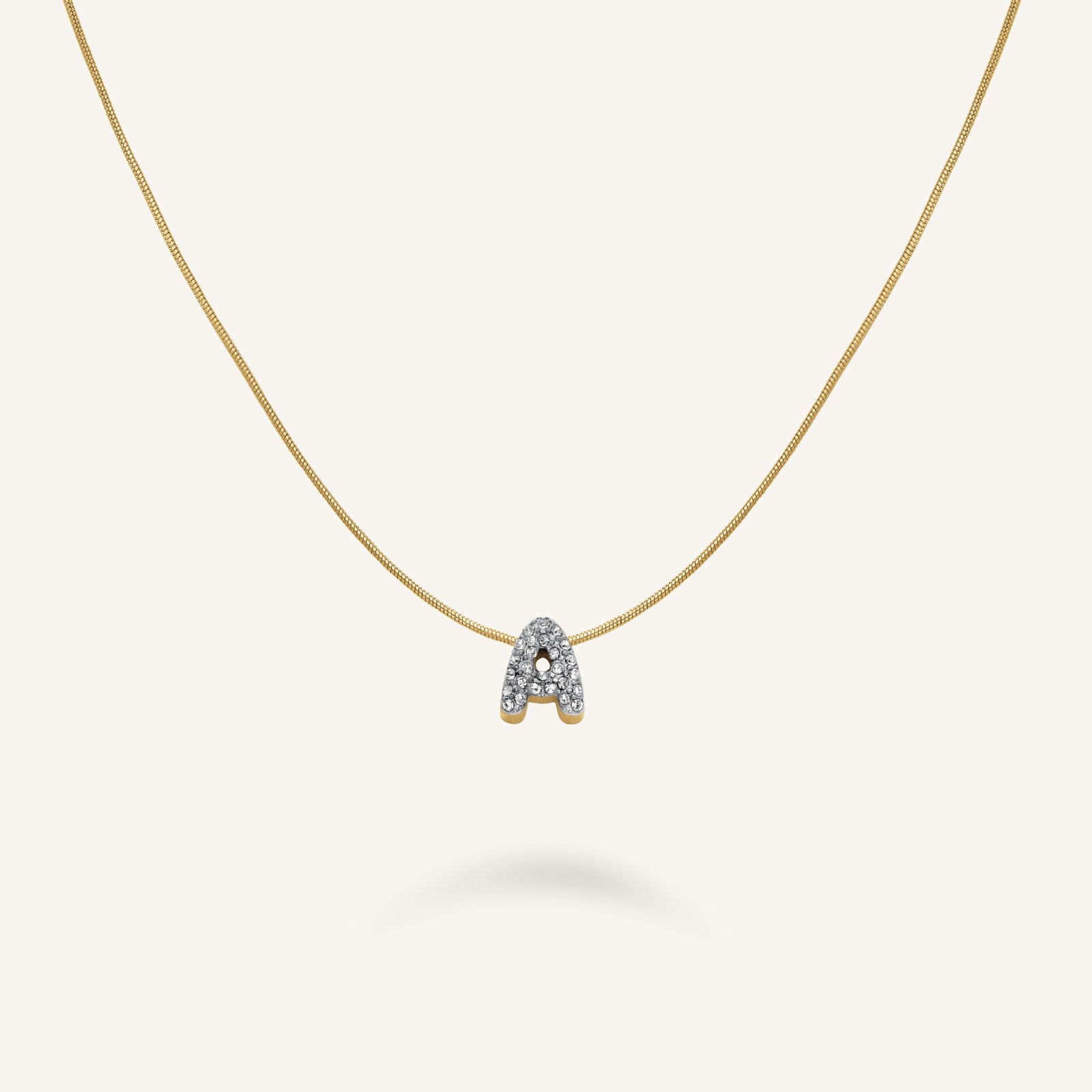 Elegant Gold-Tone Pendant Necklace crafted from durable, tarnishing-free stainless steel. Featuring a sleek round snake chain (0.9mm) with an adjustable length from 42 to 46 cm, this necklace offers a comfortable fit for any occasion. The pendant measures a delicate 0.67 x 0.8 x 0.39 cm and is secured with a reliable spring clasp.