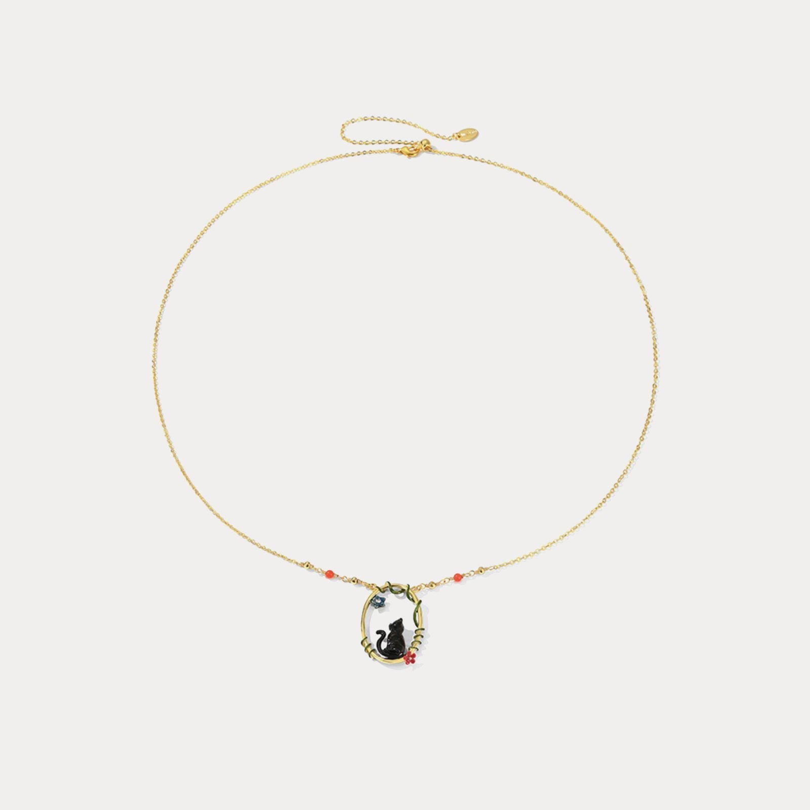 This elegant necklace features a sitting black cat on a delicate hoop, blending classic and cottagecore styles for a unique, stylish look that complements any outfit. Perfect as a thoughtful gift for animal lovers or a special treat for yourself.